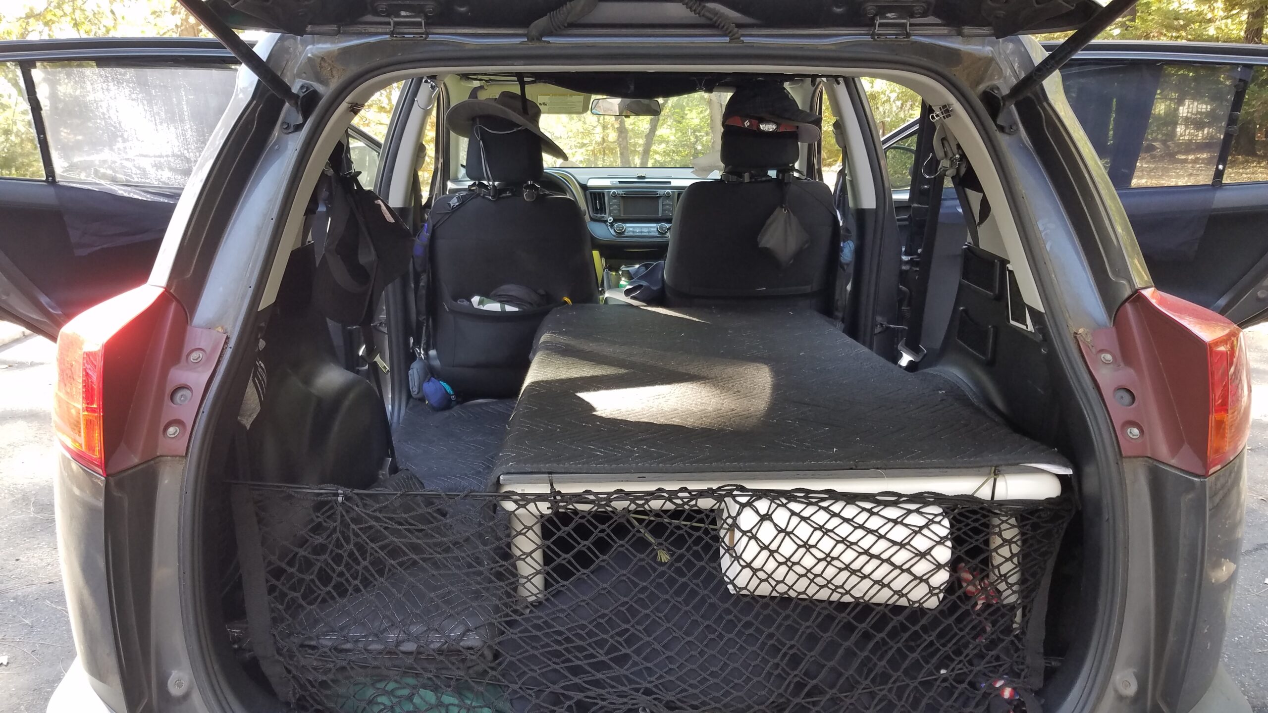 Regrettably, I didn’t take many photos when I first started camping in the Rav. But I have a few, and you will understand why I took the rear seats out and built the first platform.